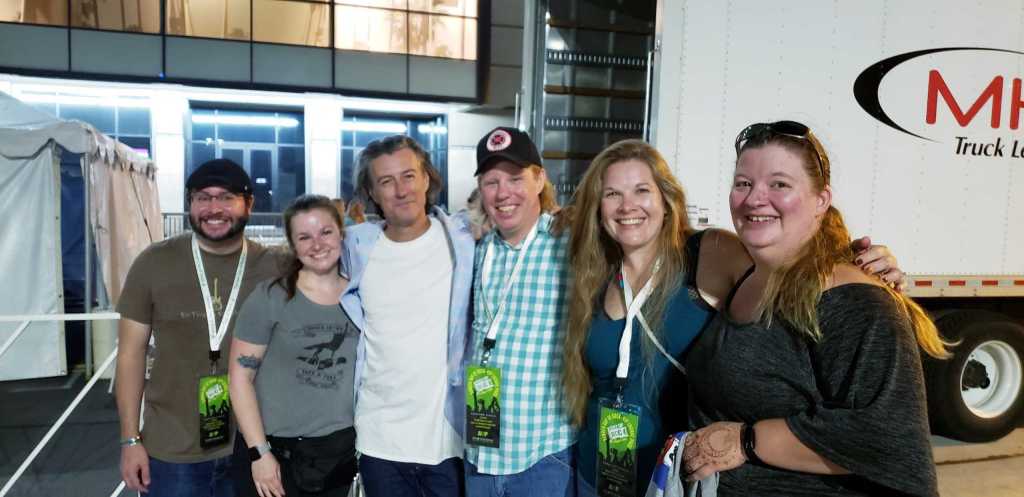 We chatted a bit more, and I saw an opportunity to ask Roger for a favor. The answer is always no if you don’t ask, right? He is such a genuine and kind soul, and he didn’t hesitate at all to come over and talk with us. He signed Kat’s shirt twice, once in pen and once with a sharpie, and also said they were a lifetime guarantee for an autograph because his hand hurt from playing, and he wanted her to have a good signature for something as important as remembering her brother. We were able to talk and reminisce, sharing about our friend, and it meant the world to us. Roger then asked if we could take “a family photo” before he ran off to get some much deserved chimichangas and tequila.