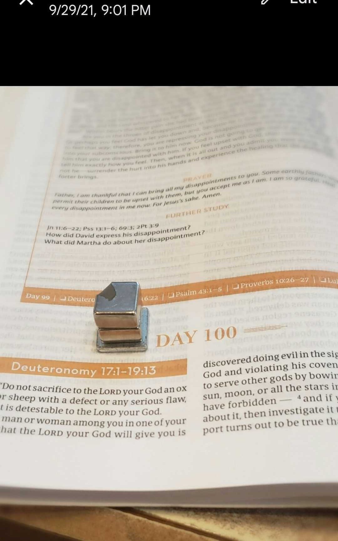 I don’t believe I shared with anyone what I was doing really, save for my kids who knew I was doing church in my room on Sunday mornings, until I reached Day 100. I sent Wiper Fluid Guy a text with his magnet on the page. Even though I had committed to do 90 days to balance out the anger baby, I found myself wanting to read more. To dive deeper, to understand how things were changing for me.
